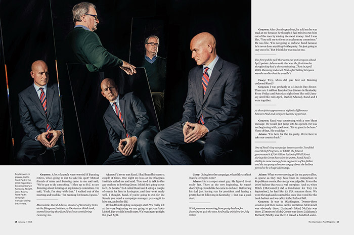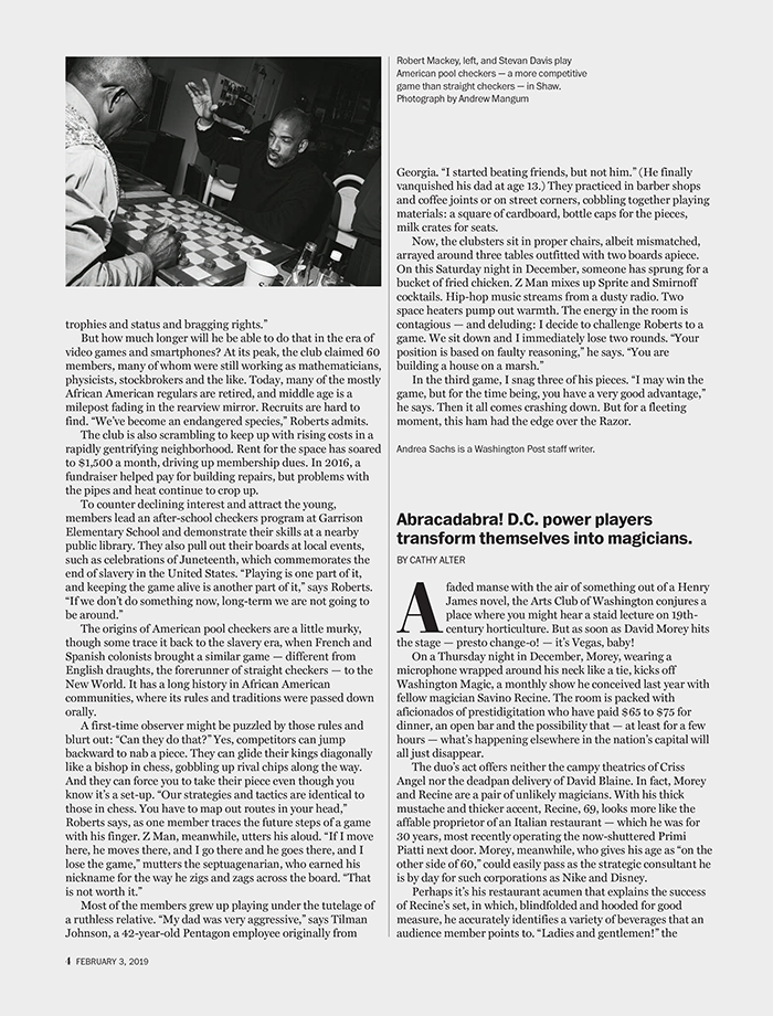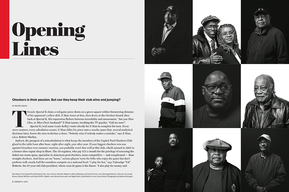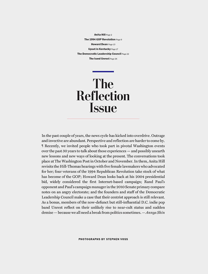 This issue brought together people who united by moments in D.C. history. Assigned and edited shoots of each group with a series of mirrors.