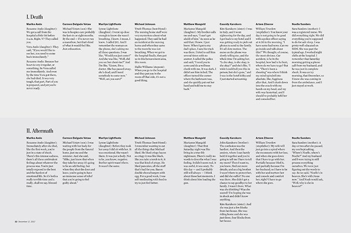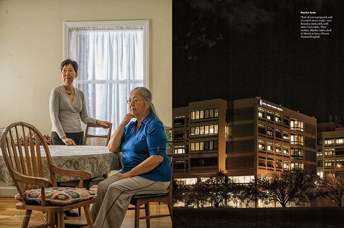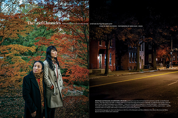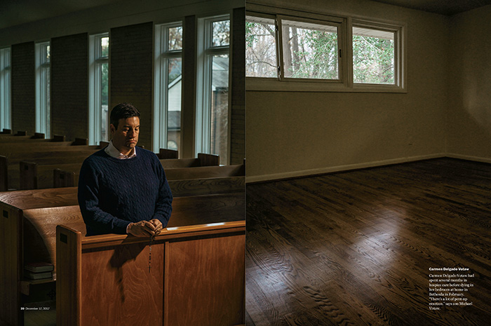 For this story on eight people who passed away in one year, I assigned two images per subject: pictures of the places where they died, and images of their family members in their places of healing.